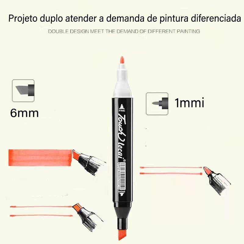 Explore sua criatividade com o Kit de 60 marcadores multiuso, desenvolvido para atender artistas, estudantes e profissionais do design. Cada caneta traz duas pontas (uma fina para traços e detalhes e outra chanfrada para preenchimentos e sombreamento), permitindo versatilidade em uma única peça.